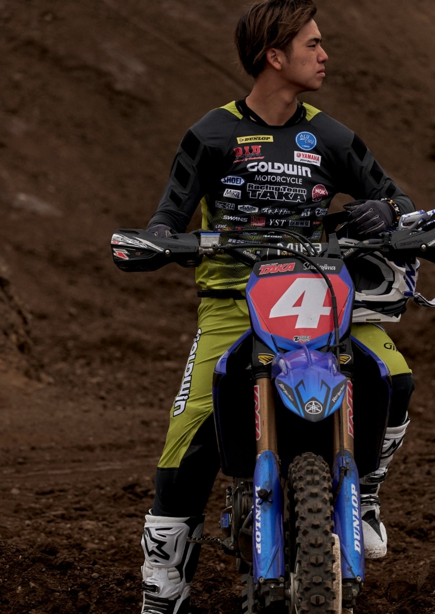 Motocross 中島漱也 Souya Nakajima Profile 中島漱也 Souya Nakajima 種目 モトクロス 生年月日 2002年 8月14日 出身地 東京都 所属チーム 「レーシングチーム鷹」 Gear Gallery What is Motocross? モーターサイクルによるクロスカントリーを略した名称からわかるように、未舗装のダートコースを駆け抜け、速さを競う競技である。コースには、起伏に富んだ地形やジャンプ台なども設置されており、一般的なロードレースにはない豪快さが魅力のレースだ。それゆえに選手は、スピードだけではなく、コーナーリングやジャンプなど卓越したテクニックが求められる。 TOPへ戻る