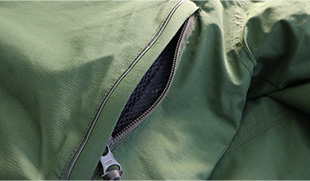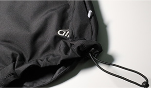 裾のドローコードをしっかり締めることでジャケット下部からの浸水を軽減できます。