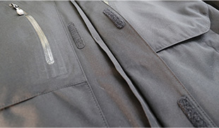 アウトドア用のレインテストなら、上部から雨に見立てたシャワーで検証されるのだが、これがモーターサイクル用となると、前方向からのシャワーが追加。時速100キロの風圧がかかっても漏水しないレベルに設計される。モーターサイクルスペックを持つ製品は、アウトドアウエアよりも高い防水性を備えているということになる。だからといって、正しく着用していなければ漏水してしまうのでご注意を。走行の際はファスナーをきちんと締め、袖口からも水分が入らないよう気をつけよう。