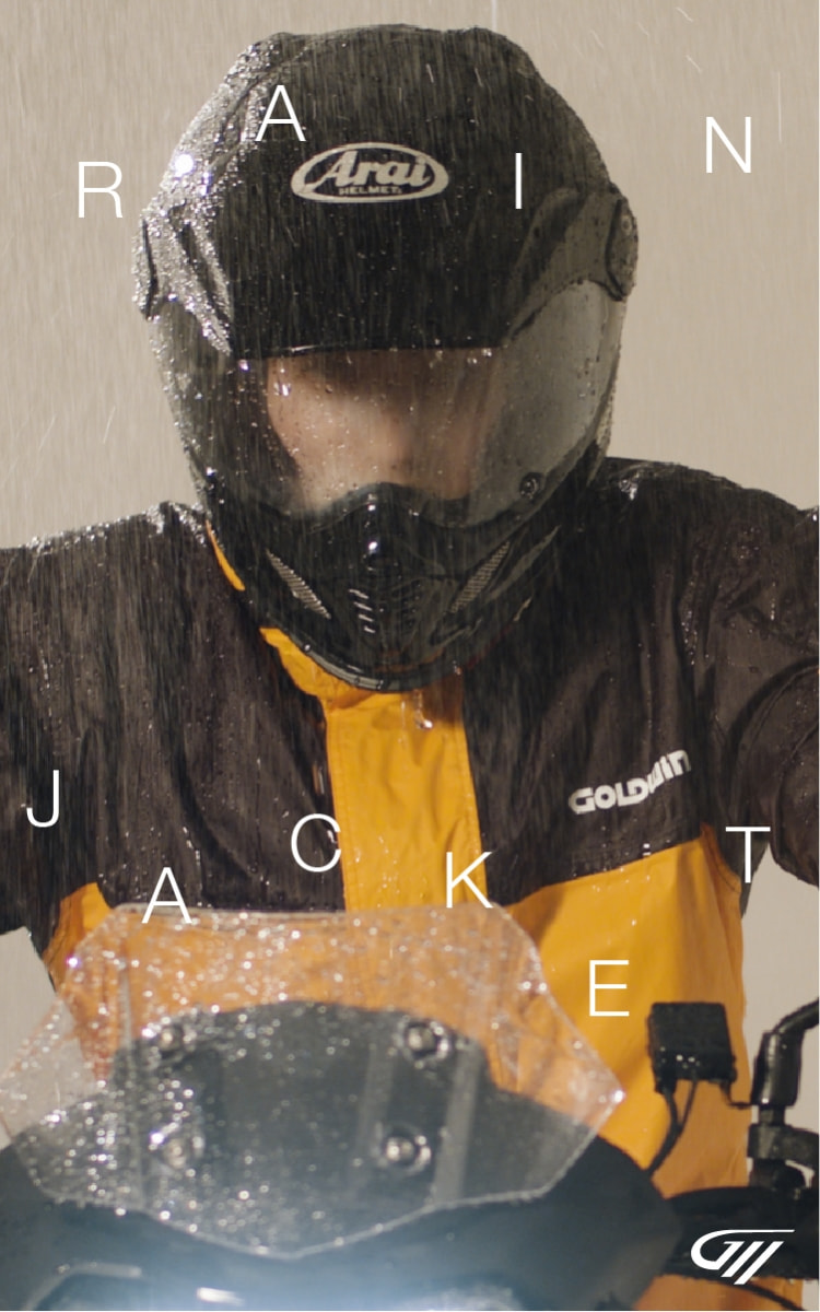 ジャストなサイズ感にゴールドウインのレインウエアは、普段のライディング用ウエアの上から羽織ることを想定して作られている。少し大きなシルエットになっているのは、ライディングウエアの上から羽織ることでジャストなサイズになるよう作られているからだ。例えばライディングウエアはLサイズを着るのであれば、レインウエアもLサイズを選ぶことでベストフィットするよう計算されている。ライディングウエアの上からでもスムーズに腕を通して羽織ることができるゆとりもあり、レインウエアの着脱にストレスもかからないだろう。それは秋冬の嵩張るライディングウエアも然り。ビビッドなカラーリングと今っぽいゆったりとしたシルエットが相まって、バイクを降りた後に街中でもファッショナブルに着こなせる一着だ。