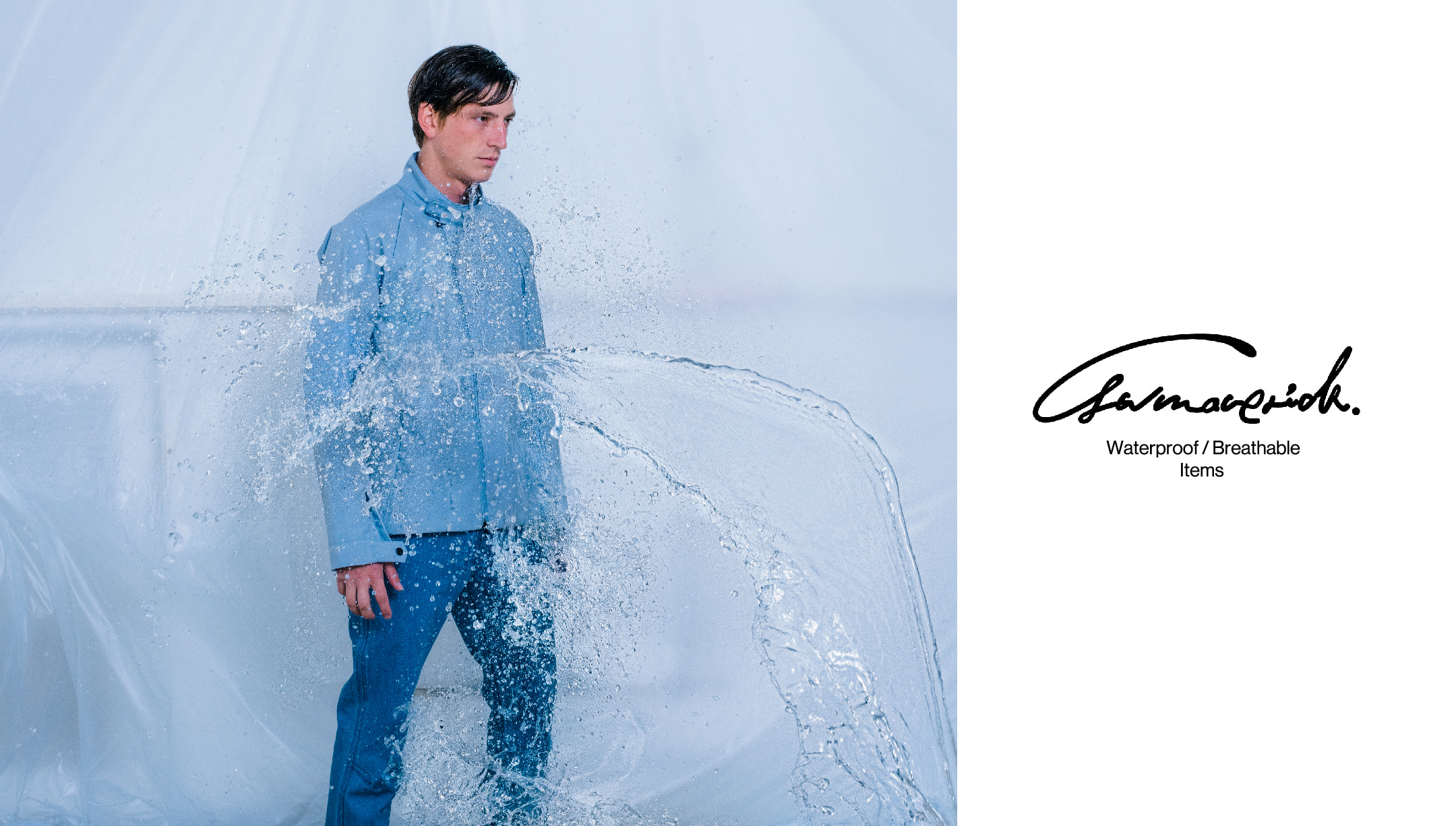 gwmaverickの2021SSコレクションより、都市生活の支えとなる防水透湿機能を搭載したアイテムをクローズアップ。これからの季節、急な天候の変化や天気が崩れやすいもの。そんな時にさらっと着用が可能な、信頼できる性能を持ったアイテムたちは日々のコーディネートの力強い味方になってくれる。GOLDWIN社の厳しいテストをクリアした製品には、着用することで実感できる圧倒的なクオリティが宿っている。