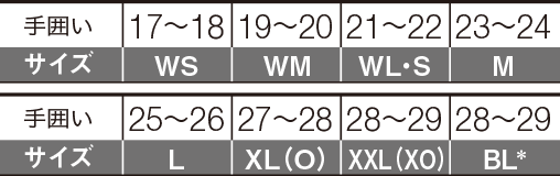 - *上記は製品の実寸法ではなく、各サイズ表示に対し、基準となる身体サイズを対応させています。また上記の寸法は目安としてのものですので、体型によっては異なる場合があります。