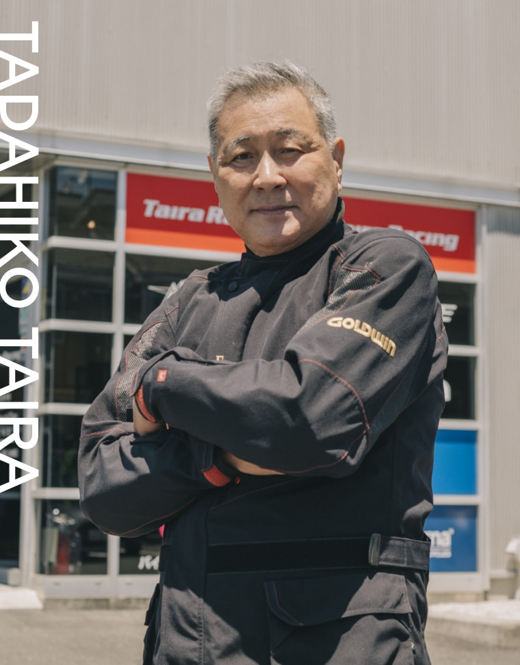 (たいらただひこ)全日本選手権や世界GP、鈴鹿8時間耐久レースなどでさまざまな記録と歴史を作ってきた伝説のライダー。現在はモーターサイクルショップ タイラレーシングを運営。GWMのアイテムは25年以上前から使っており、特に気に入っているというユーロのウエアは10年以上大切に愛用している。