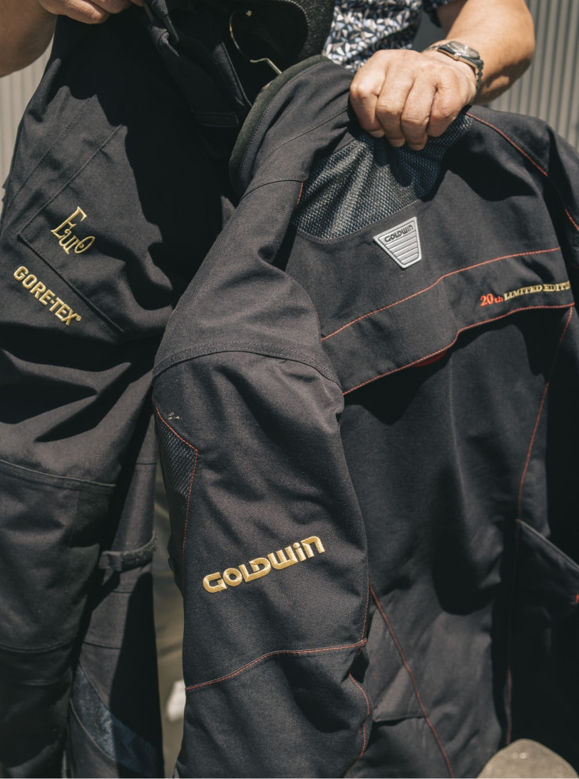 25年以上もGWMのギアを使ってきたと話す平氏。職人技とも呼べる同社の徹底されたギアのクオリティが日々のライディングを支えてくれているのだ。プロライダー時代から引退、そして現在とバイクの乗り方は変わりつつあるようだが、長年平氏を魅了してやまない一つのウエアがあるという。
