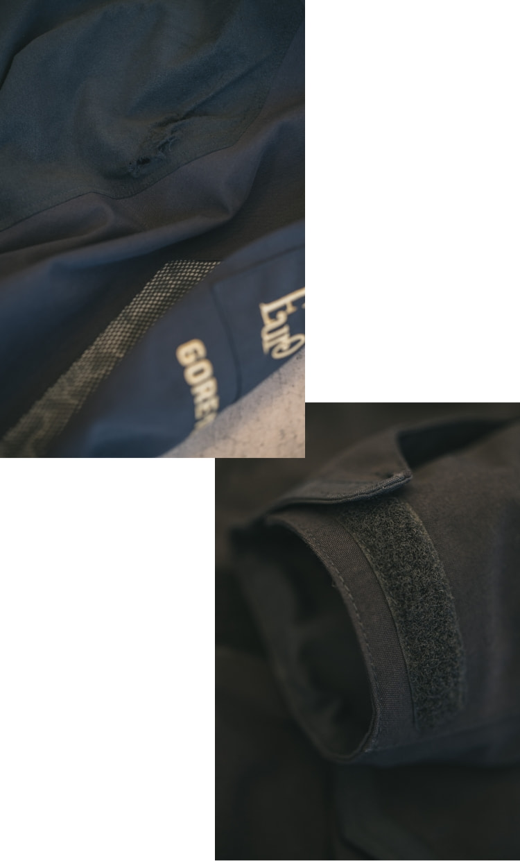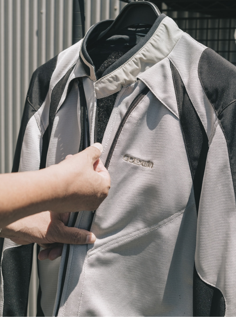 大切に使い、何千何万キロもの距離を共に走ってきた平氏のギア。擦り切れた生地や空いた穴には思い出が詰まっているからこそ、簡単に手放して新しいギアを買うということにはならないのだ。だがバイクギアはライディング中に命を守ったり、快適さを得るための重要なツール。その役目に命を吹き返させるサービスがGWMには存在する。その名も「リペアサービス」。読んで字の如くだが、愛用しているギアをゴールドウインリペアセンターに送れば、同社が有償にて補修を行なってくれるのだ。このようなサービスを待ち望んでいたライダーはきっと多いのではないだろうか。かくいう平氏もリペアサービスをいますぐ使いたいライダーの一人のようだ。「このようなリペアサービスは長年の希望でした。ウエアは決して安いものでもないので、買ったら5年10年と使いたい。ジャケットやパンツはそうそう劣化するものではないですが、ベルクロの弱りや生地の擦り切れはどうしても避けられないですからね。だからこのサービスを利用すればその問題が解決されますし、好きなウエアと共にもっと長い距離をライディングできると思うと嬉しいです。GWMのウエアを身につけるようになってものづくりの素晴らしさを感じるようになったので、僕もきちんと商品に向き合いたいんです。そういう意味からもリペアサービスのアイディアには強く共感しますし、多くのライダーがこのサービスを利用して、ものを大切に使う豊かさを知っていってもらえるといいですね」。