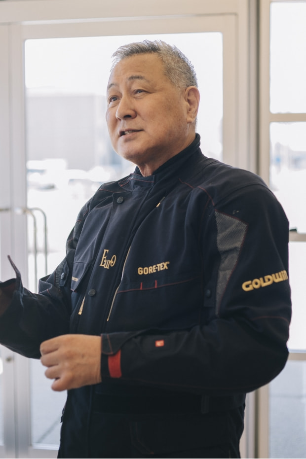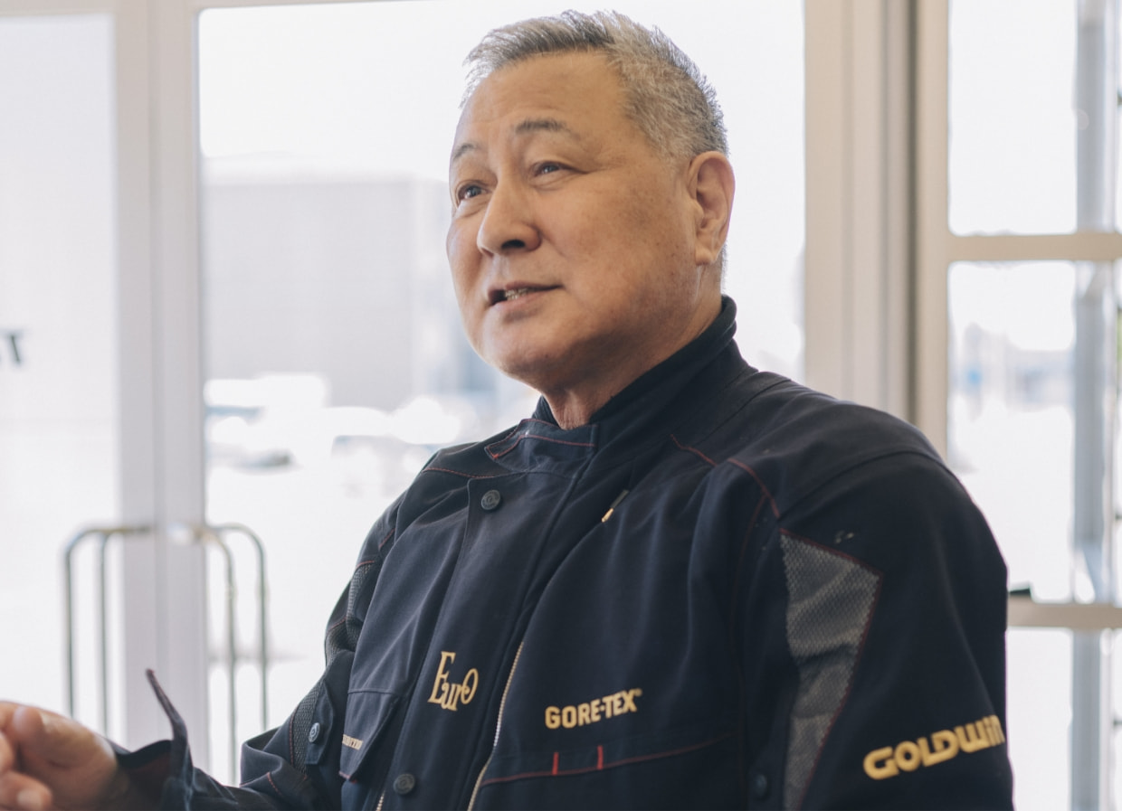 もはや説明は不要だろうが、平氏といえば80年代からヤマハワークスのエースとして活躍し、鈴鹿8時間耐久レースでは数々のドラマを生み出してきたレジェンドライダー。今年で66歳を迎える彼だが、「先日は北海道へツーリングに行き、10日間で3,050km走ってきたんです」と一言。未だ衰えを知らないバイク愛と体力に驚かされつつも、まずはGWMのギアとの出会いについて話を聞いた。