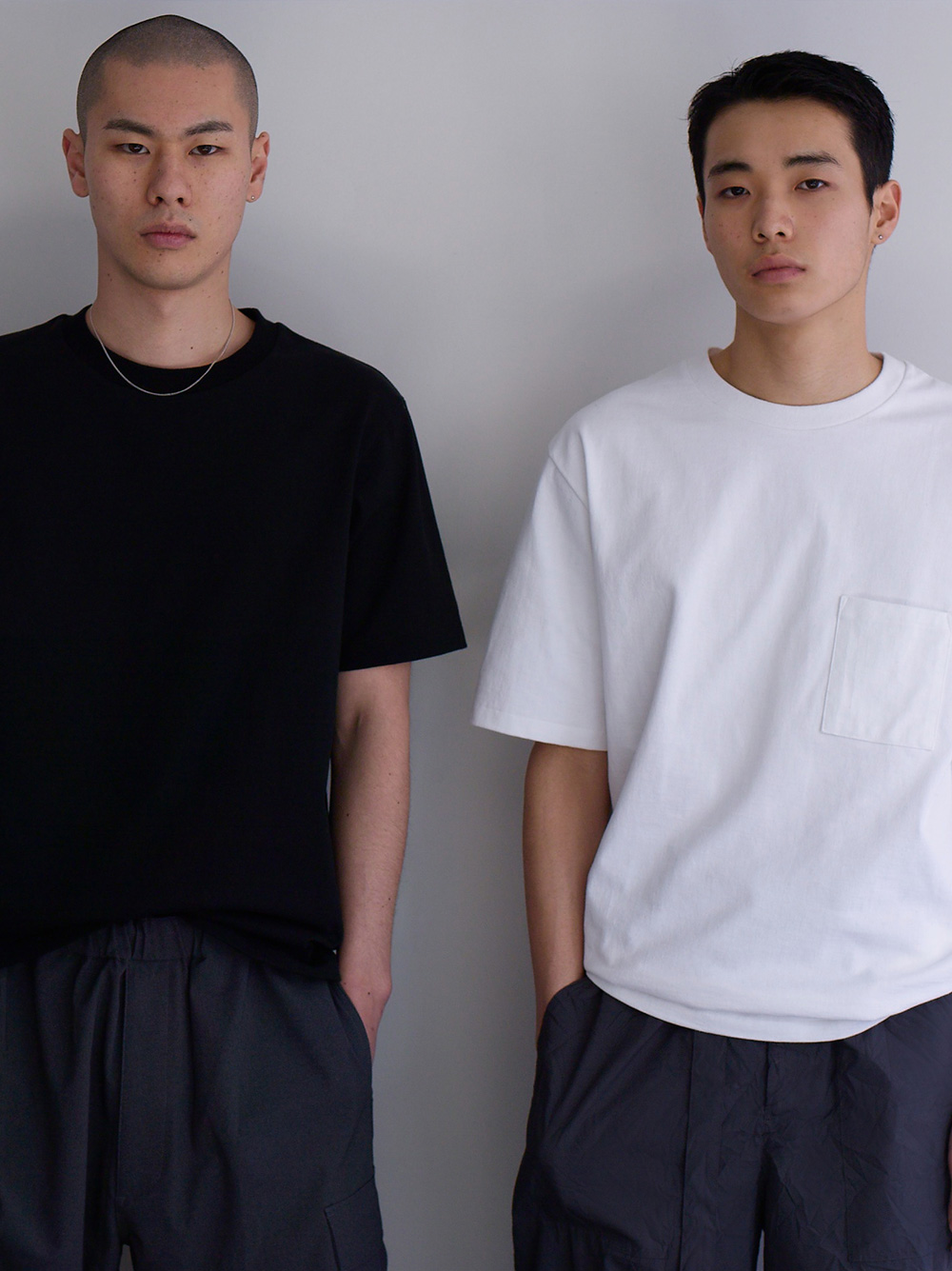 <MEDIUM/DRY JERSEY>シリーズは、10オンス相当のしっかりした肉厚のカットソー素材でありながら、肌に触れる面には毛細管現象による吸汗速乾性を備える異形断面ポリエステルを採用しているので、汗ばむ季節にも