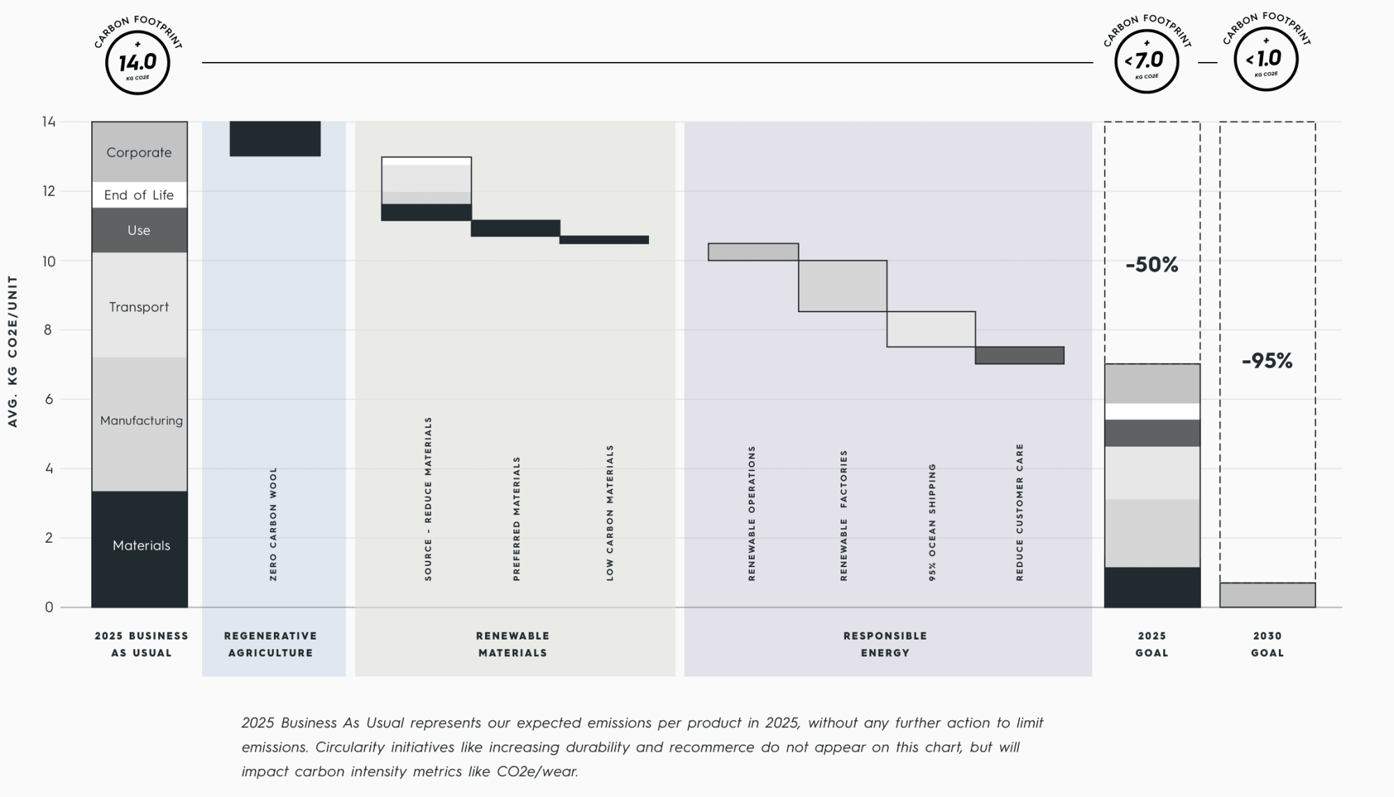 ひとつ目は、2025年までに全製品のカーボンフットプリントを半減すること。