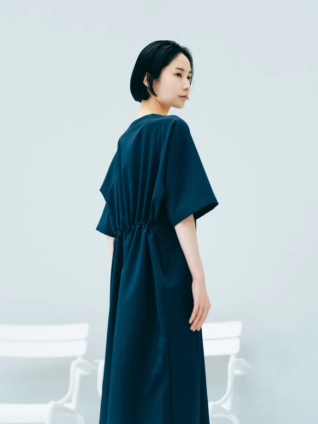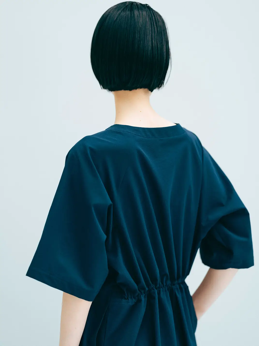 通気性と速乾性を備えたポリエステル布帛素材のワンピース。メッシュのような通気孔により、さらりとした着心地が続きます。腰にはポケットを配し、背中にはシルエットを調整できるゴムのシャーリングを配置。適度なストレッチ性で、身体の動きにもスムーズにフィットします。UVガード(UPF30-50+、紫外線カット率90%以上)機能に加え、虫よけ加工も施しています。