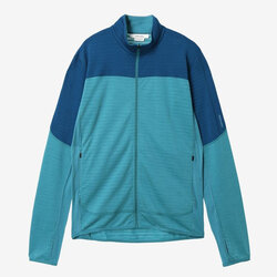 トレッキングやスノースポーツに対応する、高い保温性を備えたミッドレイヤー。フルジップ仕様で着脱や体温調整がしやすく、脇下のパネル切り替えによりアクティブな動きにもスムーズに対応します。袖口にはサムループを備え、寒いときは手の甲まで包み込むミトン風デザイン。両サイドのポケットに加え、内側にもポケットを備え、行動中の収納力も確保しています。