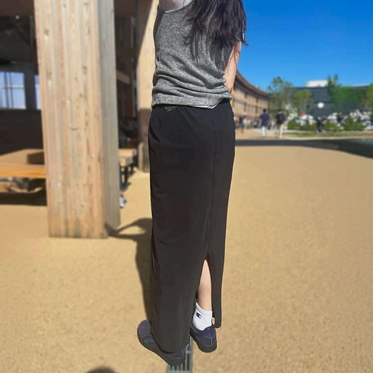 実際に着てみたら、とにかく軽くて驚きました。なのに透けにくいのもありがたいポイントです。足元の日焼け止めって、意外と塗り直しが面倒ですが、UVカット機能がついているので安心。暑い日は、やっぱりスカートが涼しくて心地いいですね。