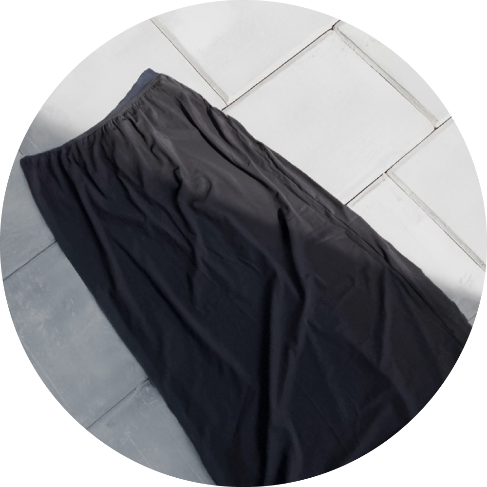 仕事でサンプルに触れる機会が多く、発売前から気になっていた一着でした。ウエストは総ゴムで丈の調整もしやすく、「マルチ」という名前だけあって、いろいろな着こなしが楽しめそうだなと思って購入しました。