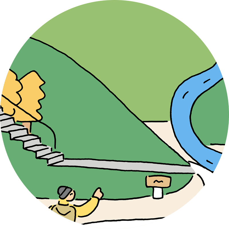 里山や低山でのハイクは、手軽に自然を満喫できるのが魅力。足元は普段使いもできるシューズ、急な天候変化にはレインウェアがあると安心。手軽な準備でリフレッシュできます。