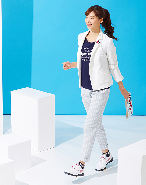 夏の暑いラウンドの後こそ、白ジャケで爽やかに決めて。