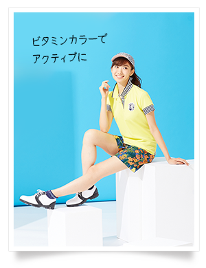 ボタニカル柄のショートパンツには、イエローを合わせて元気よく!