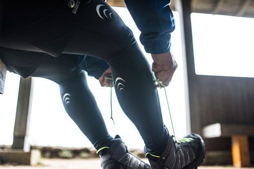 ・ひざ部分に特殊なプリント加工を施し、高いサポート力とスムーズな足の曲げ伸ばしを両立
