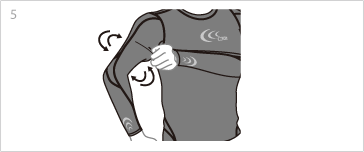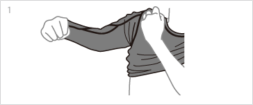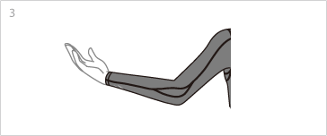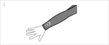 手のひらを上に向けた時に、2本の縫い目が腕の側面に並行に沿うようにフィットさせます。 |