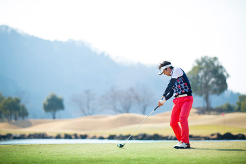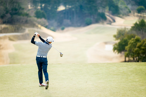 覚えておきたいのは、疲労が溜まり、筋肉がこわばることによって、このサスペンションの働きが低下することです。ひざや腰に大きな負担がかかり、アドレスが不安定になります。スムーズな体重移動や効率の良いパワ−伝達ができなくなれば、自然にショットも乱れます。