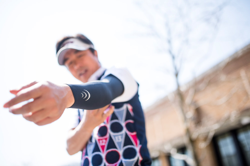 体のコンディショニングを整える為に、ランニング・トレーニングに加え、「C3fit」のアイテムを活用しています。運転中、空き時間は、コンディショニングベルトで腰をケア。長時間使用していても窮屈感が無く、腰がしっかり支えられています。ゲイターは、穿き心地が良く、プレー中の足元が安定し、上がりの3ホールが楽になりました。