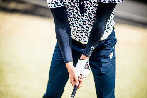 どんなライでも安定したアドレスを必要とするゴルフでは、足に多くの負荷がかかります。足裏にアーチサポート機能を備えるソックスは、この負荷を軽減。また、革のシューズでも長時間快適に過ごせるように、蒸れを抑える素材を選んでいます。