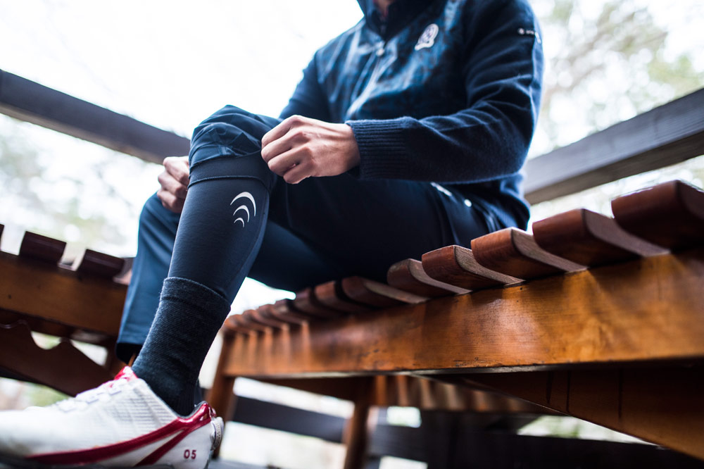マグフローのトップスは、袖を通しやすく自然と肌に馴染み、体が楽になる感覚があります。プレー中は足元にかかるストレスを軽減させる為に、ゲイターを使用し、早くリカバリーできるようにしています。また、長時間立っているようなシーンでも、姿勢や体のバランスをしっかり支えてくれる「C3fit」のアイテムが活躍しています。