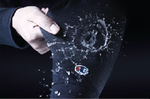 特殊撥水技術を採用した、長時間雨の中で使用しても水を弾く高機能素材。同時に、優れた耐洗濯性も実現。