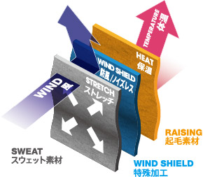 防風性とストレッチ性と保温性を併せ持った、高機能スウェット素材。