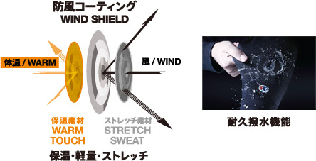 耐久撥水性に、防風性・ストレッチ性・保温性を