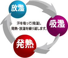 ①肌面の汗を素早く吸水拡散して乾きを促し、