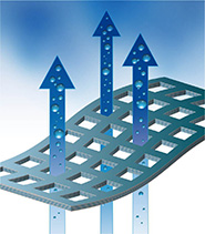 肌面から吸い上げた汗の逆戻りを防ぎ、肌面を快適でドライな状態に保ちます。