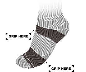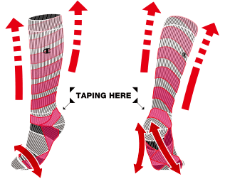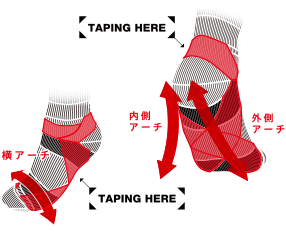 グラフ内の◯は、グリップソックス着用時に疲労度が上がっても時間短縮していることを実証している。