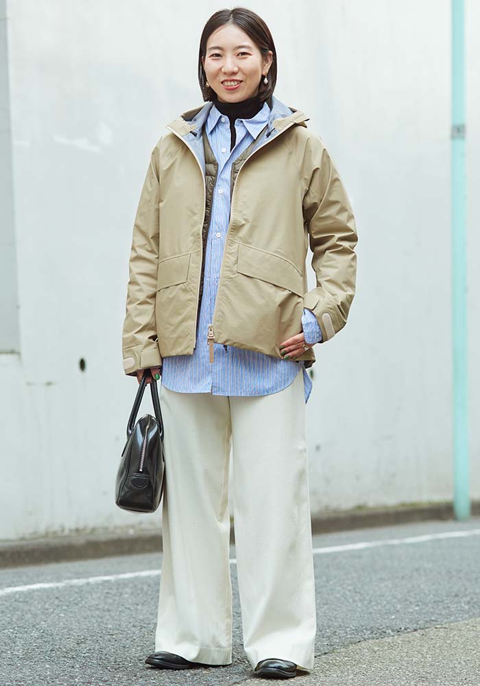 AKANE 高いスペックながら、見た目は上品。ビジネスシーンやデートにも着ていけると思う。寒いときは〈THE NORTH FACE〉のインナーダウン⑦『エクスプローラーパーセルダウンカーディガン』を着ればいいし、秋、冬、春とかなり長く使えるんだよ
