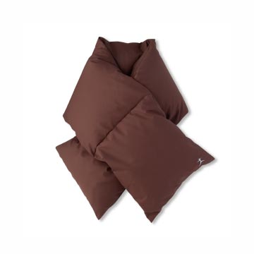 AIKA グレーがかった白だから、ワードローブの服にも馴染みやすそう。イージーケアな素材というのは嬉しいな。薄手のロングスカートと〈DANSKIN〉の④『ダウンマフラー』を合わせたところも、スタイリングに緩急があっていいバランスだね