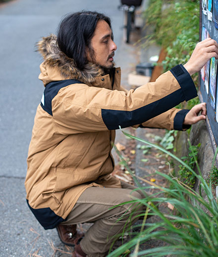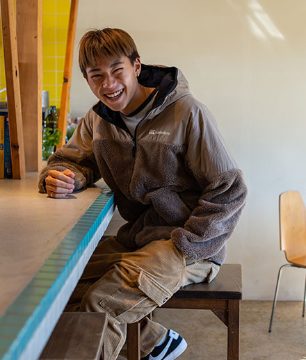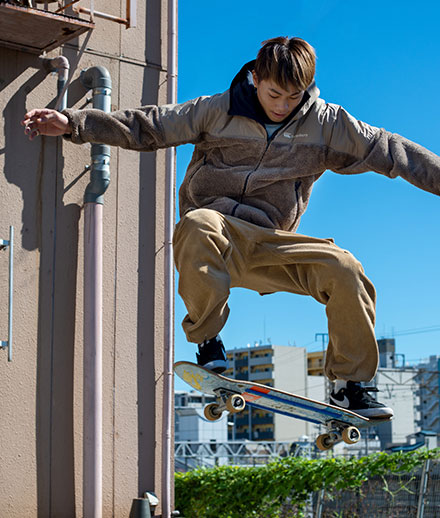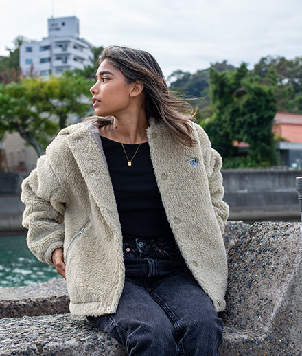 このジャケットはとっても軽くて、スケボーをしている時でも動きやすい。リバーシブルなので、昼間の天気いい日はボア面を外側に、肌寒くなってきたらボア面を中にして着たいな!今年の秋冬はこの1着を持っていれば間違いなしですね!