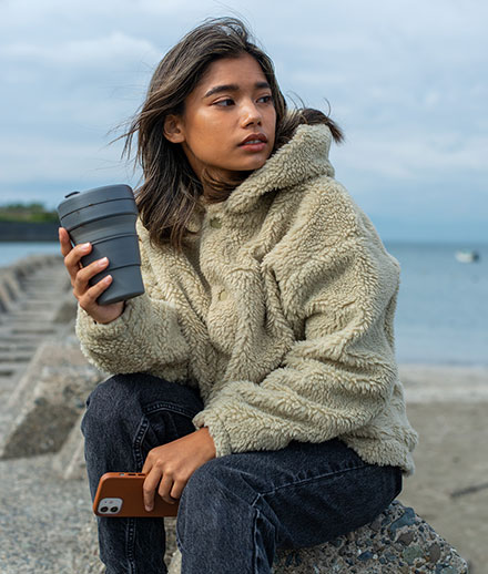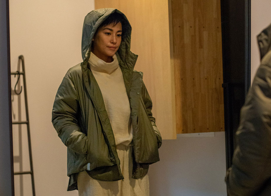 軽いのに、ふわふわで暖かく、フード付きなのが嬉しいポイント。パンツスタイルでラフに合わせるのが好きなので、 海に行く時や、キャンプをする時などアウトドアシーンでも、オシャレが楽しめそうです。このオートミールカラーも、秋冬のファッションに取り入れやすく気に入っています。