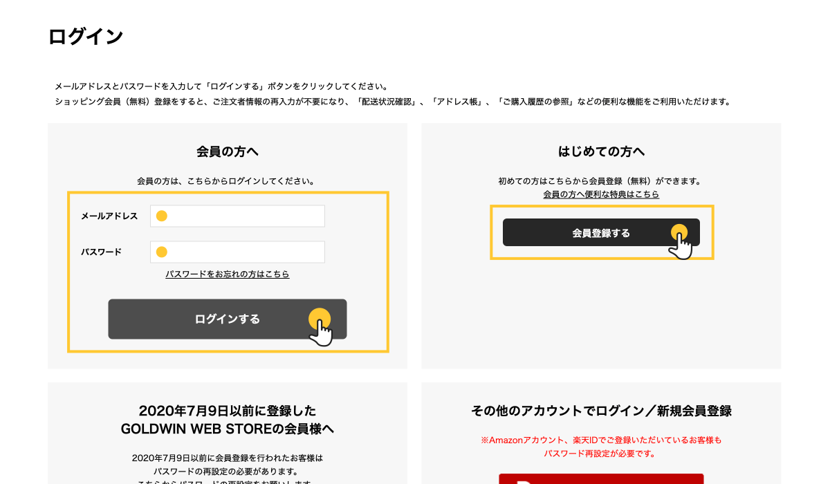 入力後にログイン