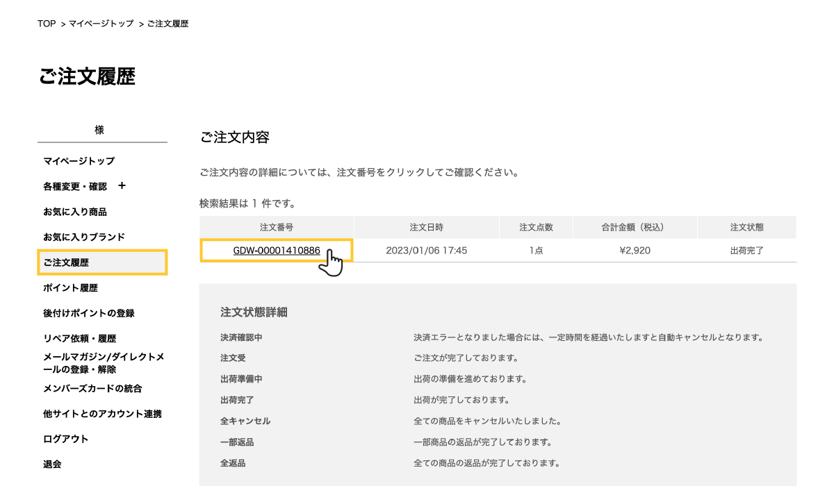 ・注文番号をクリック