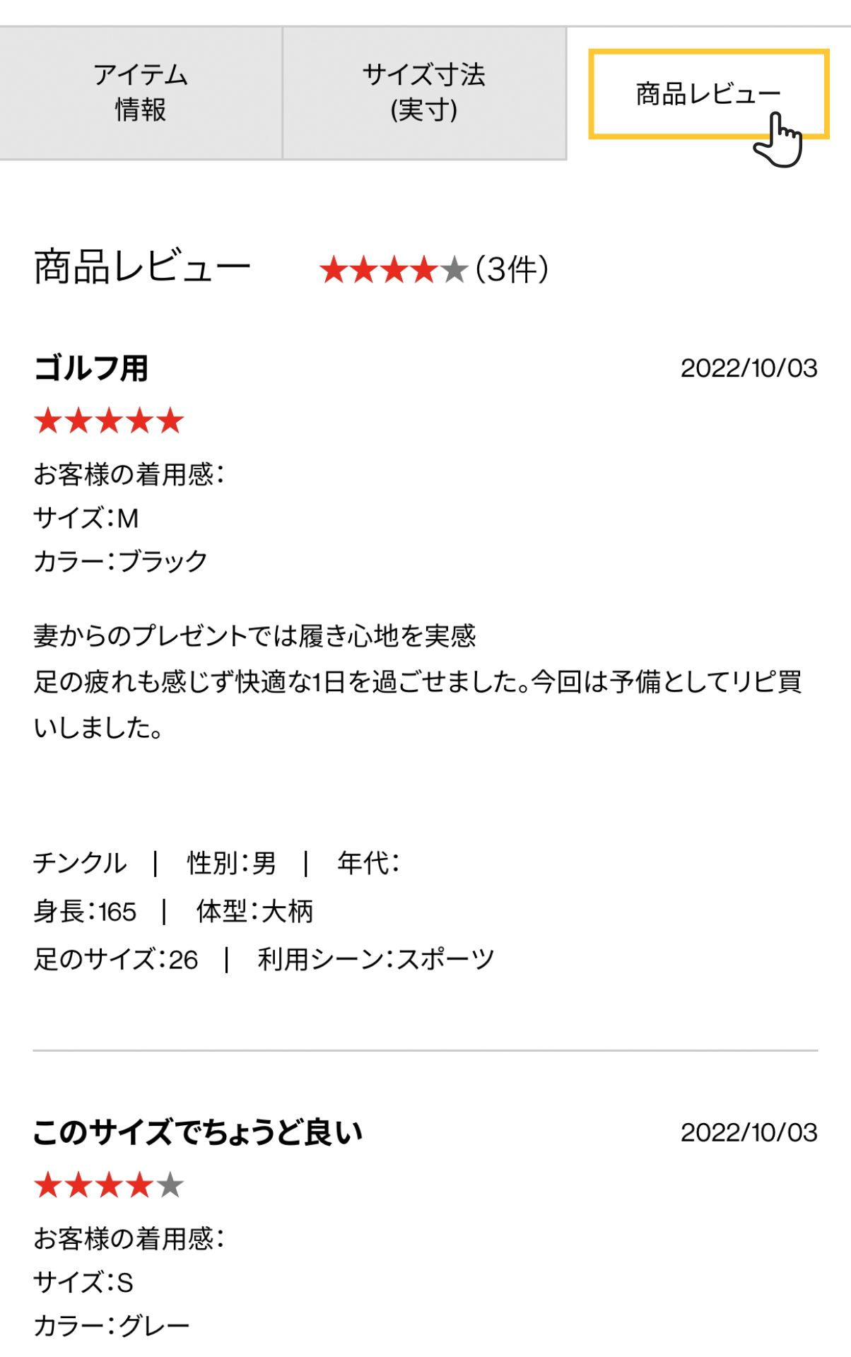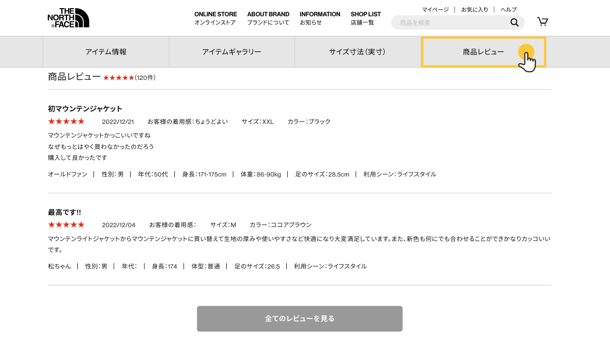 商品ページの商品レビューから