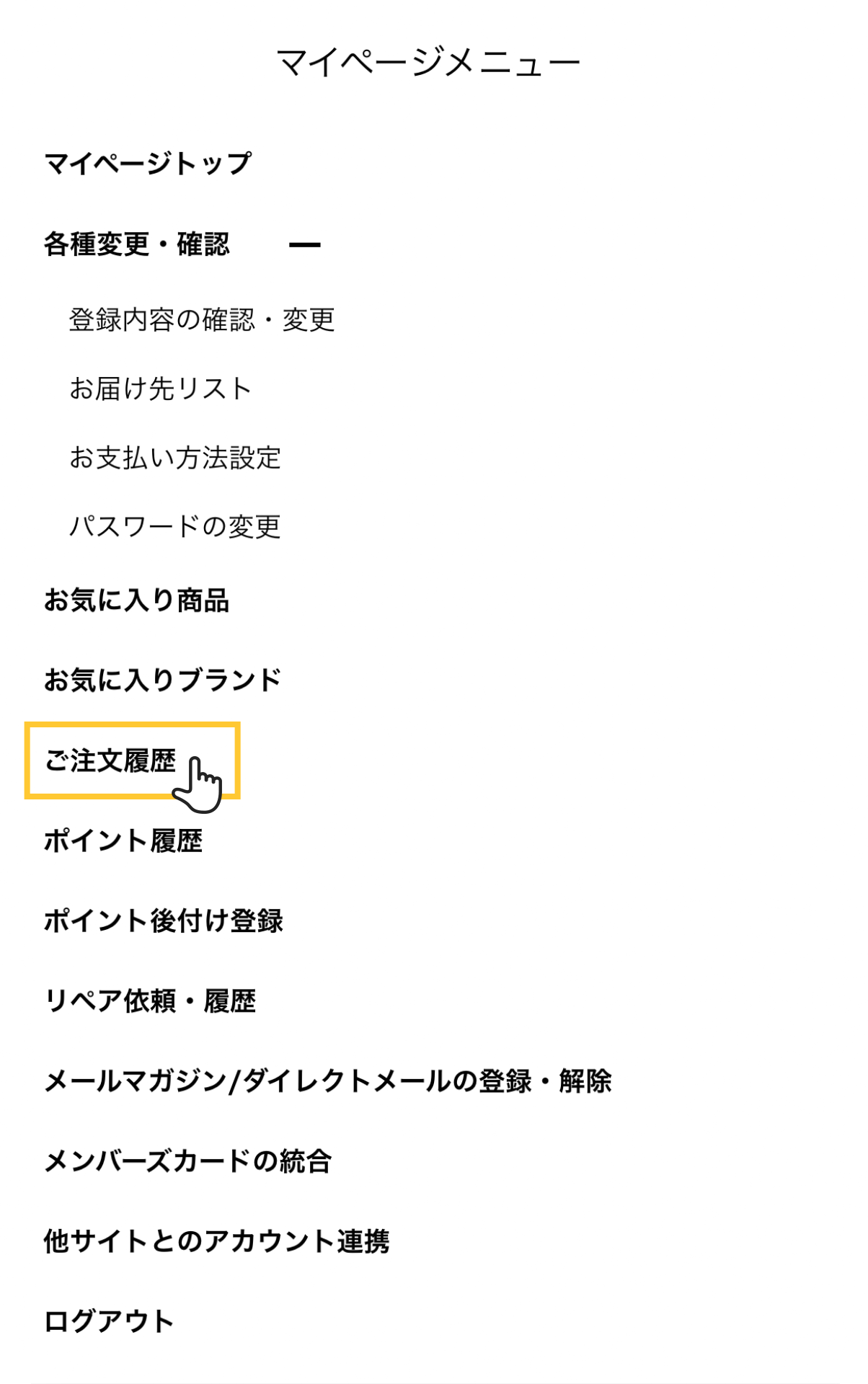 ・ご注文履歴を選択
