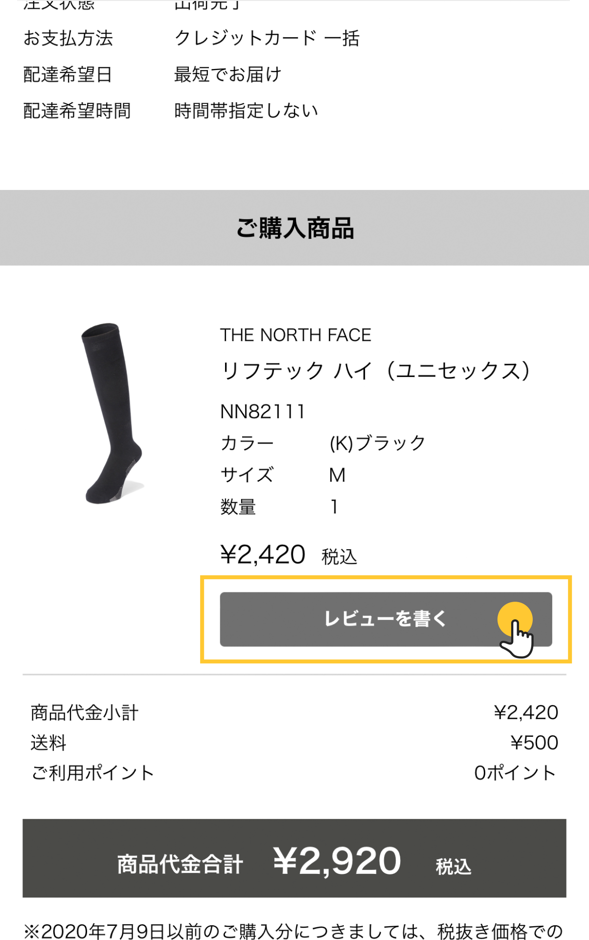 ・レビューを書くを選択