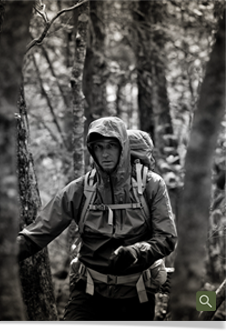 メンズLサイズで200グラムを下回る軽さでありながら、高度な耐水性も兼ね備えたパフォーマンス・シェル。脇下に伸縮性のあるニット素材を採用しているために非常に動きやすく、透湿性に優れた生地が湿気を素早く逃がすので、険しい山道や高温多湿な季節に富士の樹林帯を歩くときでも快適な着心地が保たれます。バイクパッキングやスピードハイクのような激しい動きをともなうスポーツにも適しています。