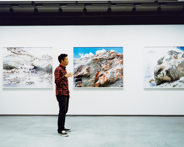 旅の間隙を縫って行われたインタビューは、写真展『Makalu』の会場にて。ビル大の岩石や氷河など、極地ならではの威厳に満ちた風景は、石川直樹の今春の日常でもある。圧倒的な自然とそこに生きる人々。多角的な眼差しの痕跡。