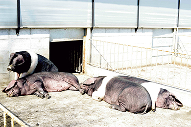 A Kagoshima pig farm that focuses on the process and imports the rare species saddlebacks from America.