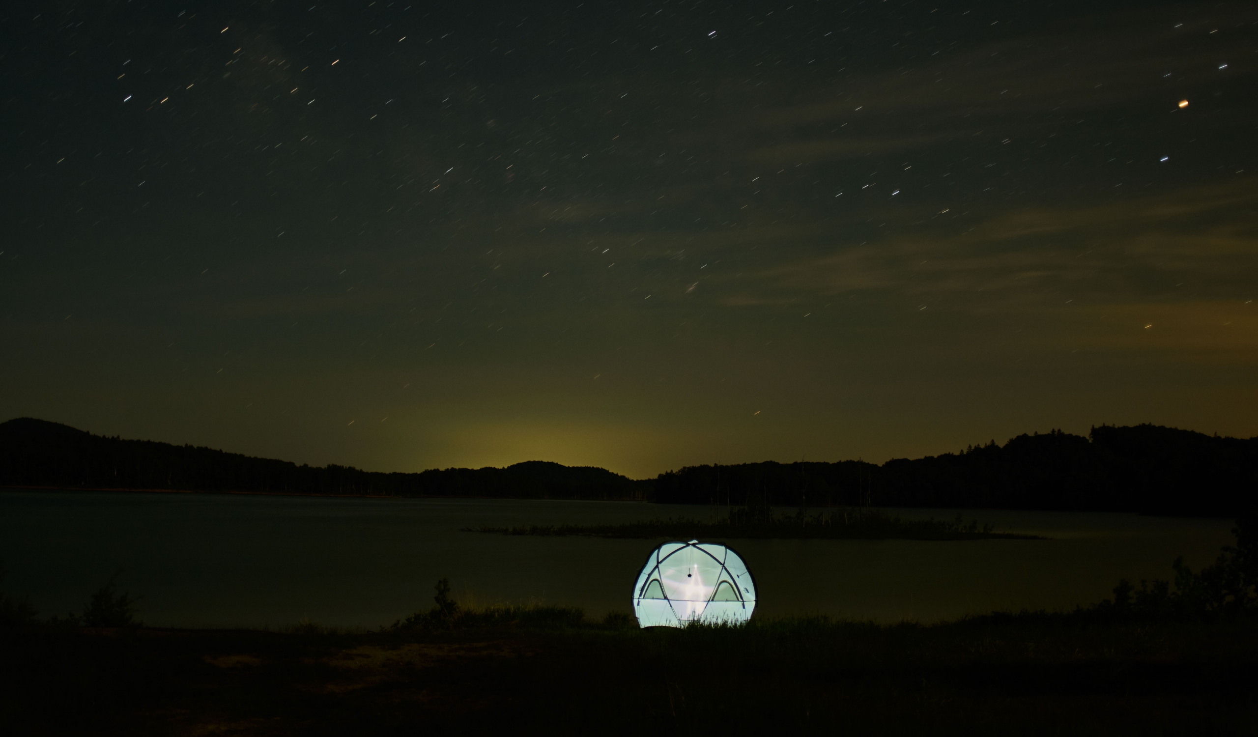 あるがままの自然に踏みいる。 見たことのない景色、味わったことのない経験を求めて、 テントを張り、その環境に溶け込む。 同じような地形、同じような植生でも、どこに拠点を定めるかで、感じる心地良さは変わっていく。 その揺らぎこそが自然の本質であり、その探求こそがキャンプのオリジナリティなのかもしれない。 Geodome® 4というテントには、「20世紀のレオナルド・ダ・ヴィンチ」の異名をとる偉大な発明家、 リチャード・バックミンスター・フラーの思想が深く刻みこまれている。 かつて彼が唱えた、地球全体を一つの宇宙船として捉える「宇宙船地球号(Spaceship Earth)」。 まるで宇宙船のような佇まいを持ったこのテントを携えて自然に潜ると、 自分自身を含めた自然の要素ひとつひとつが、地球そのものを形作っているのだと、不意に気付かされる。