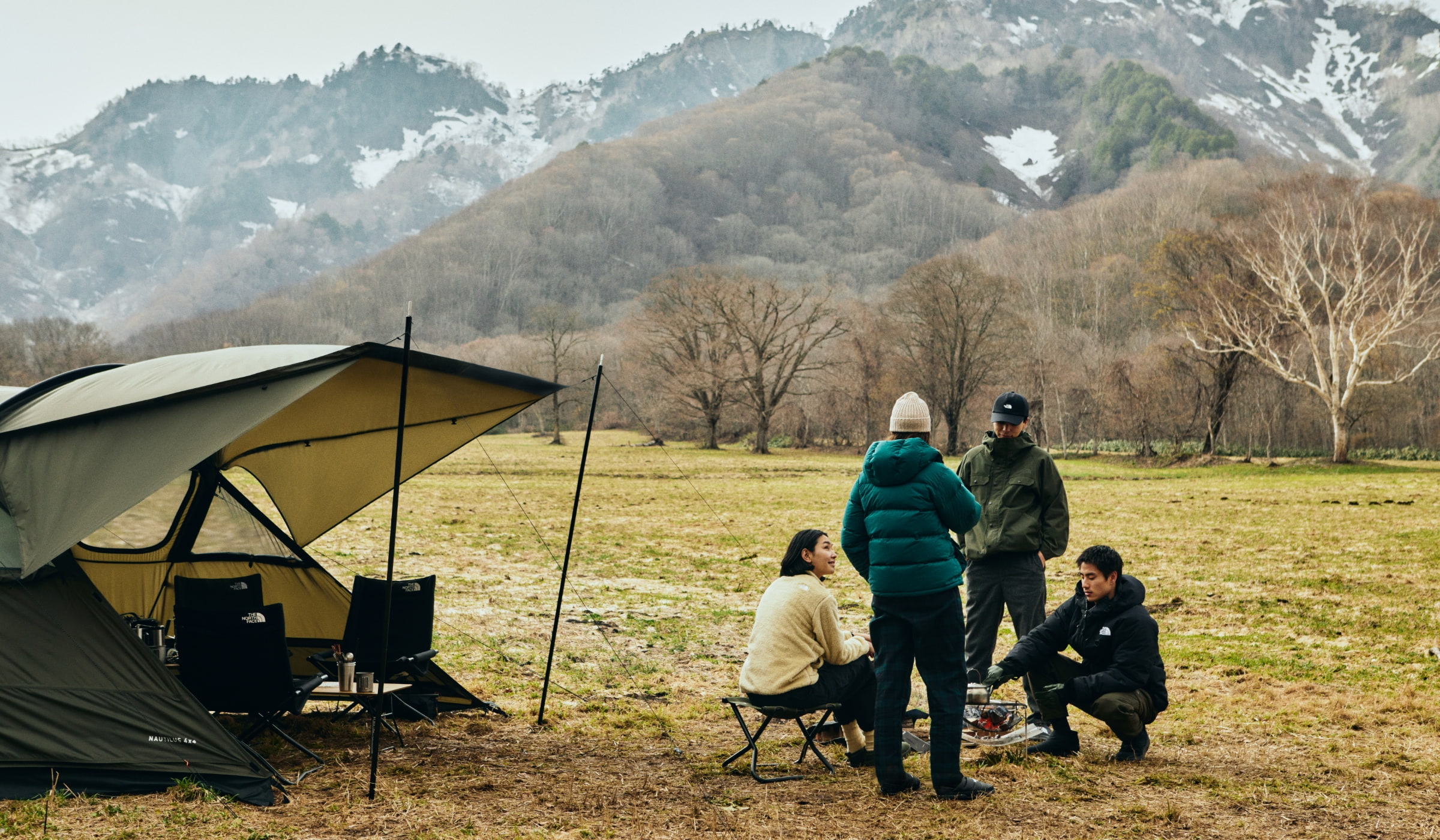 初雪という特別なご褒美まで付いてきたことで、今回初キャンプだという友人の顔がほころぶ。