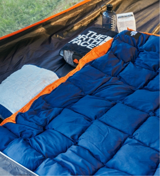 異なる厚さの3枚が1組になった2人用のスリーピングバッグで、組み合わせによって、さまざまな気温に対応することができます。素材にはポリエステルを採用しているので、ダウンに比べるとメンテナンスも容易です。