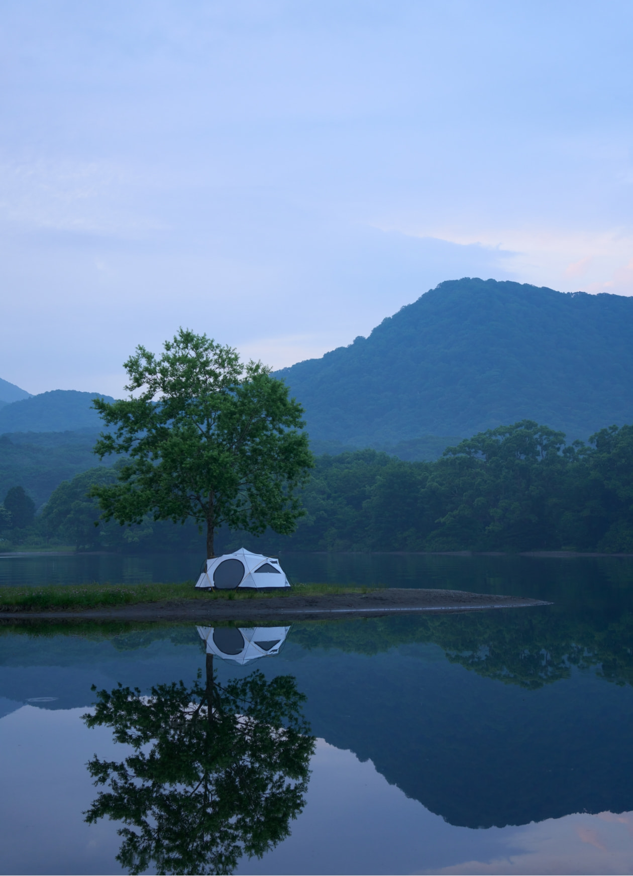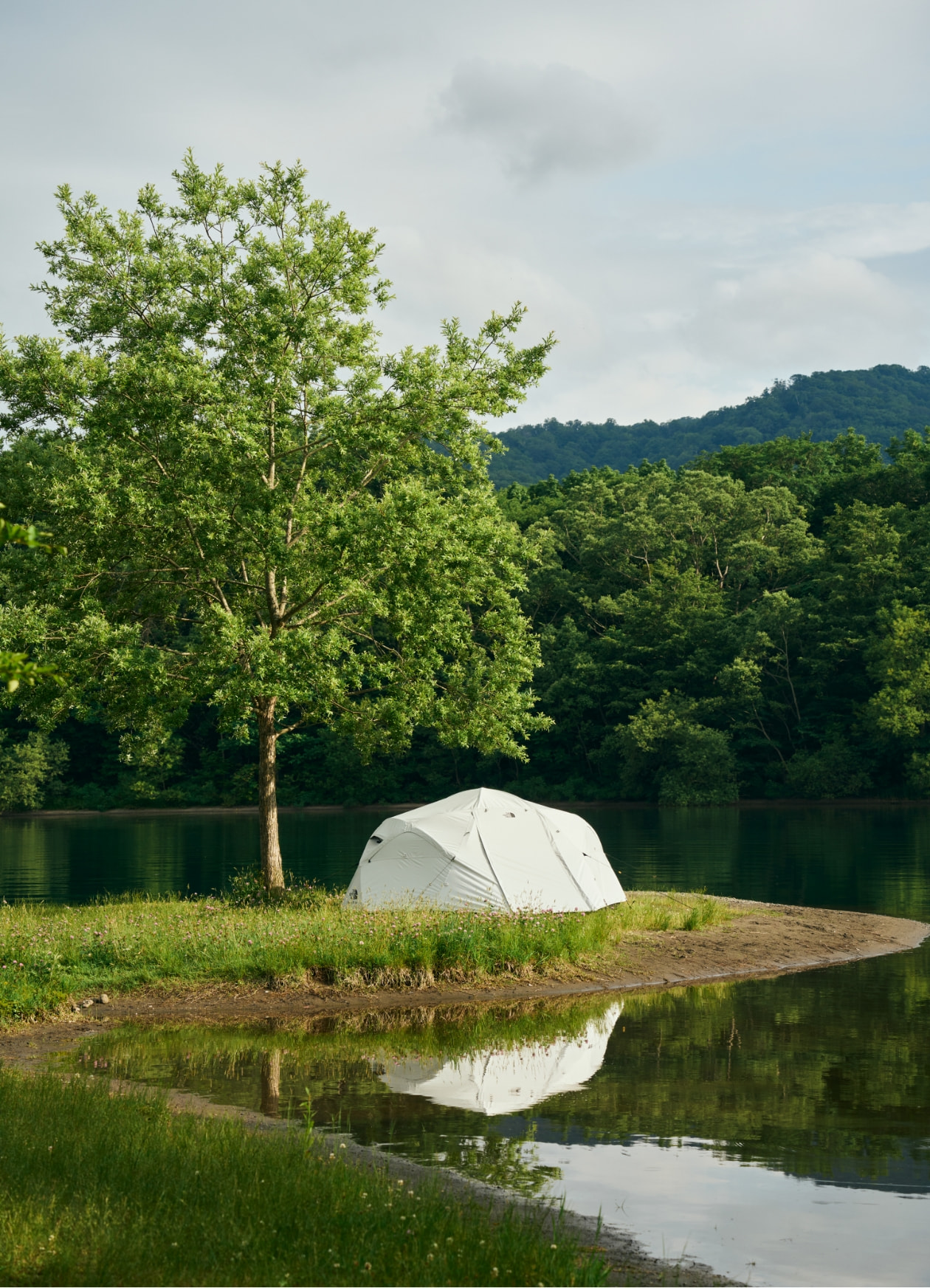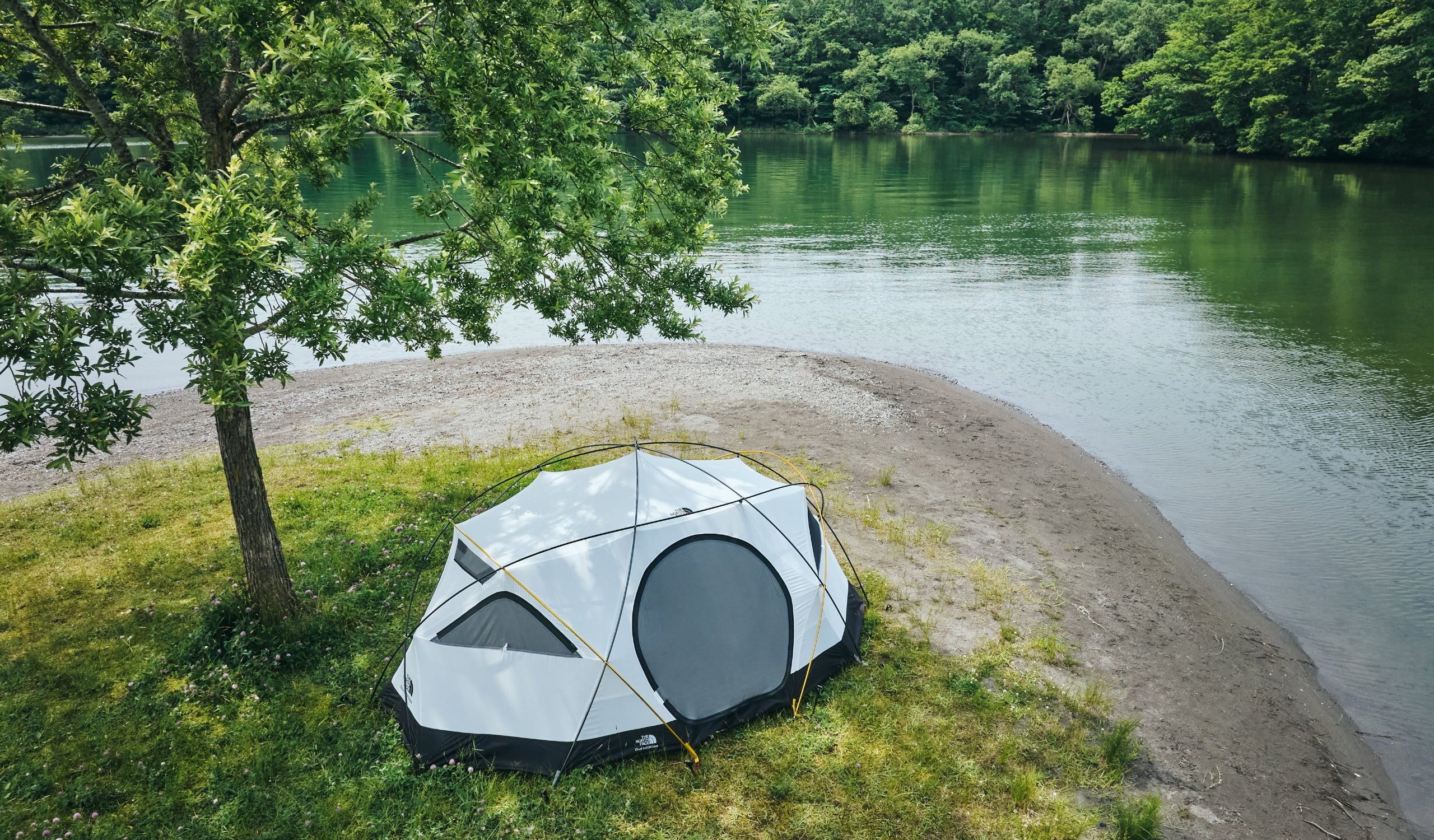 1975年に生みだされた歴史的なプロダクトを現代の技術でアップデートした、4人用のエクスペディションテントです。アメリカの発明家リチャード・バックミンスター・フラーの理論を応用した効率的なデザインによって、極地における暴風や積雪から使用者を守る耐久性や、広々としたテント内空間がもたらす快適な居住性など、未知への冒険をサポートする数々のスペックを必要最小限の資材を用いて実現しています。また、そうした従来の機能に加えて、二酸化炭素そのものを素材としたファブリックの採用による炭素循環へのアプローチを行うなど、環境問題に挑み続けた開発当時の姿勢を、半世紀後のテクノロジーを用いた新たな形で引き継いでいます。