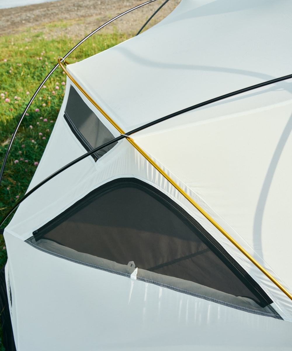 インナーテントには各所に配されるメッシュウィンドウが付きます。開閉可能でさまざまな温度帯に対応することができます。