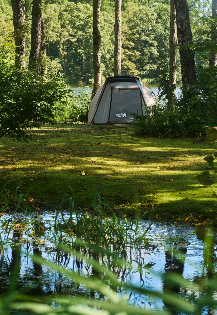 「NAUTILUS」コレクションは、独自開発のフレームシステムで、設営を容易にした大型テントです。インナーテントを吊り下げた状態でも、内部は十分な広さがあり、中央部分をリビングダイニング的に使える2LDKのような間取りになっています。インナーテントなしのフロアレスシェルターにすれば、大人数で集まれるベースキャンプのような使い方もでき、別売りのマットを連結すればロースタイルでも楽しめます。さまざまなスタイルで使い分けできる汎用性の高いコレクションです。